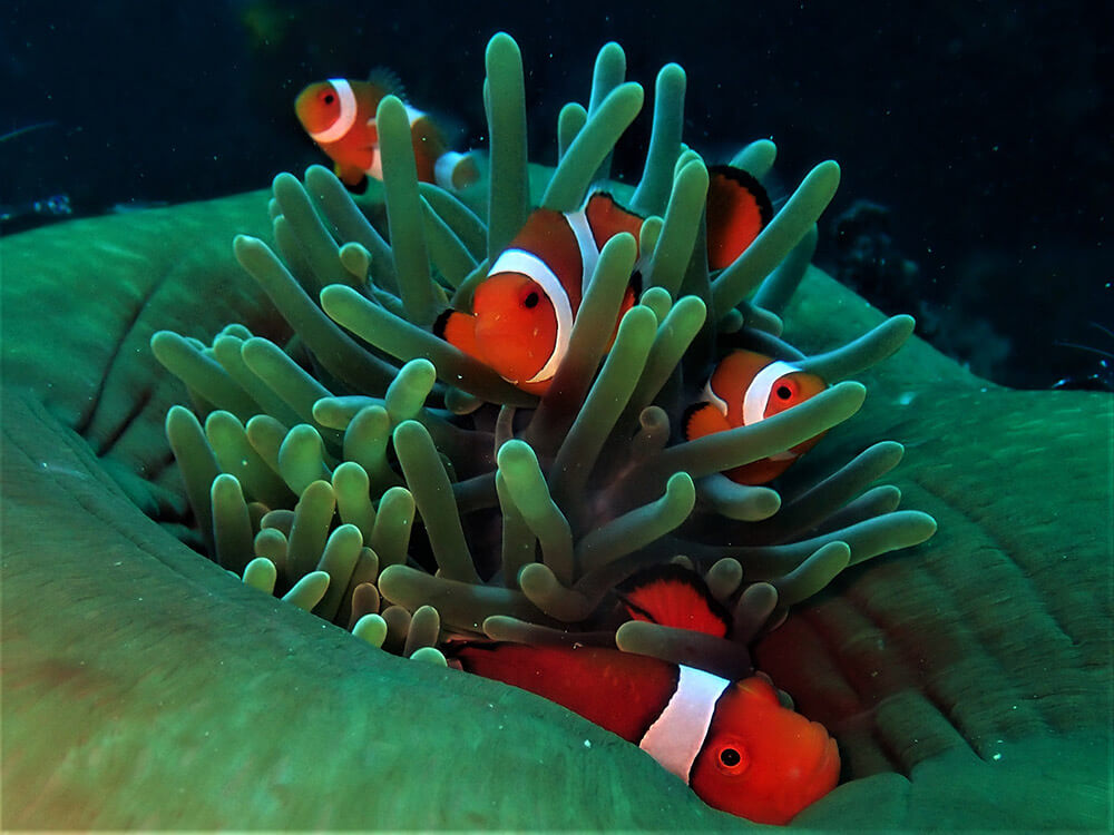 A. percula generally occupies anemones that are near shore, while A. perideraion occupies anemones that are more offshore. Anemonefish do not occupy anemones if they are in shallow water or if they are too small. Shallow waters are not an inhabitable environment for A. percula because of the lower salinity levels, increased temperatures, and exposure during low tides. Also, small anemones would not provide protection from predators.[11]