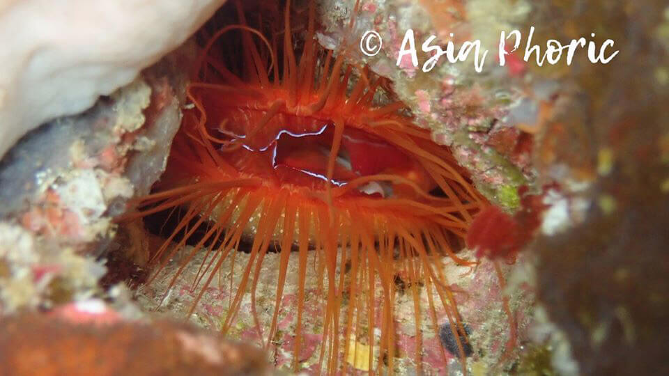 Research by graduate student Lindsey Dougherty showed that the apparent flashing-light display of this clam is not a bioluminescence phenomenon, but is instead coming from reflection of the ambient light (sun or diving light). A staff member of the Lembeh Resort in Indonesia, where Dougherty was working with Dimpy Jacobs in August 2013, wrote, "The clams have a highly reflective tissue on the very outer edge of their mantle that is exposed and then hidden very quickly, so the change back and forth from the white reflective tissue to the red tissue creates the appearance of flashing".[4][5]